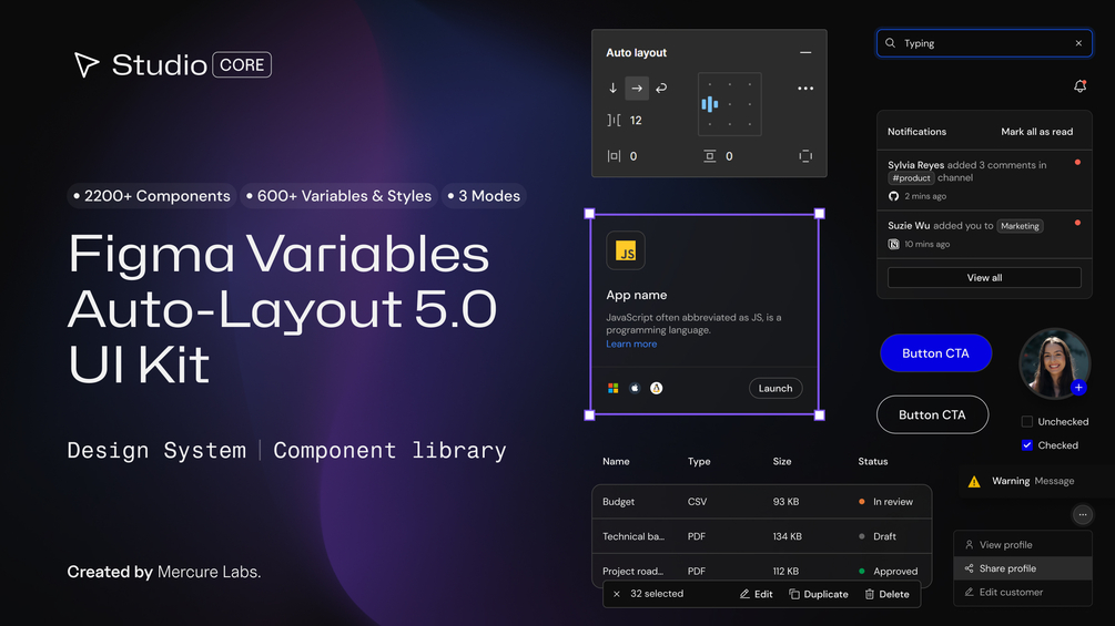 Studio UI - Figma Variables & Auto-Layout 5.0 UI Kit CORE Component library (V1.2)